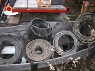 Tracks: Heavy Duty, 3 Ply polyester molded edge, heat treated steel cleats and tire guides.